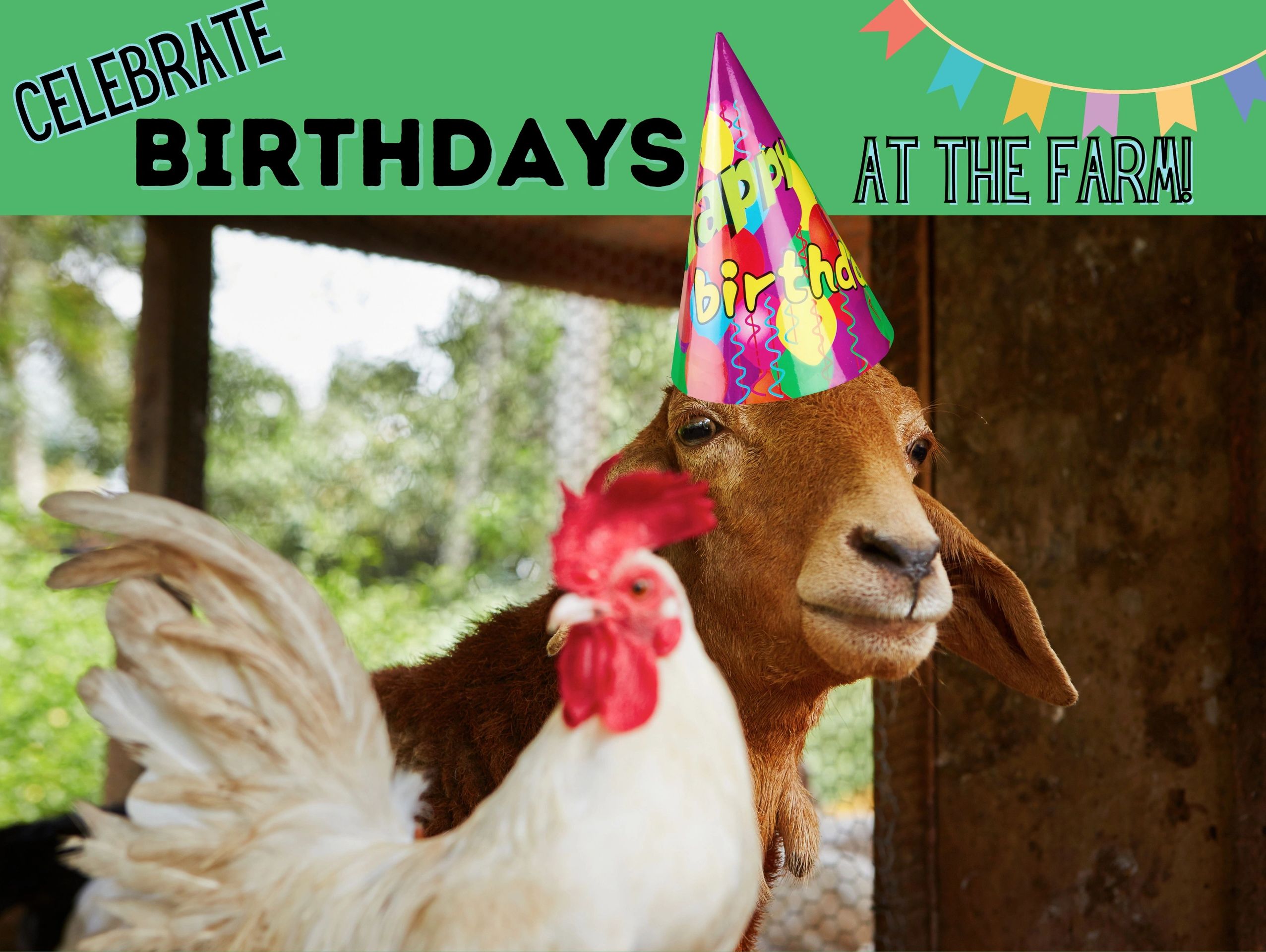 Parties consist of rental of barn for 2 hr, admission to farm, petting zoo, and animal feed for guest. Use of bounce houses, playgrounds, and seasonal activities are included with admission. We do not limit number of children per party but do limit to a total of 60 guests. Picnic tables in barn can seat up to 24 kids.